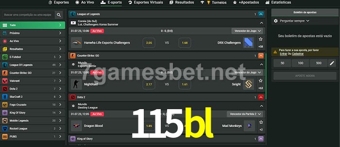 O 115bl oferece uma grande seleção de opções de apostas em e-sports com probabilidades competitivas